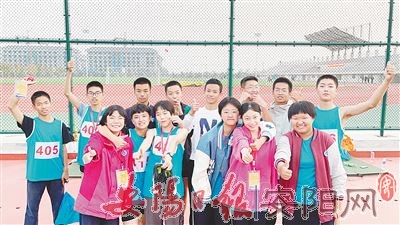 在10月29日、30日举行的市中小学生田径锦标赛上,市飞翔学校学生发挥奋力拼搏、勇于争先的精神,在女子200米、3000米及男子800米、男子跳高等9个项目中夺得第一名。图为比赛结束后,学生兴奋地庆祝胜利。