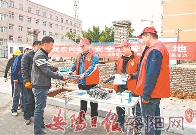 志愿者结合气象部门工作内容,对项目管理人员和建筑工人开展安全宣传教育,提高施工人员对安全生产的认知度、参与度和重视度,结合一些建筑施工安全事故实例,强调安全常识及安全施工的重要性,在日常工作中有意识地规避工作陋习,强化自我保护能力;积极推广气象APP,农民工通过手机扫二维码关注,就可以及时获取最新的天气情况和冬季防寒安全知识。