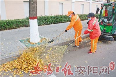 随着气温骤降,我市道路两侧落叶量大增,给道路一线的环卫工人增加了巨大的工作量。