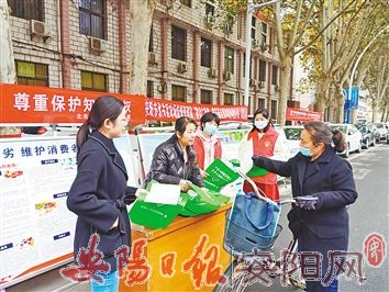 11月2日,区市场监管局在辖区内开展了食品药品安全宣传活动。图为执法人员为往来群众发放宣传页,并解答食品安全法律法规等方面的问题。(邢文皓 摄)