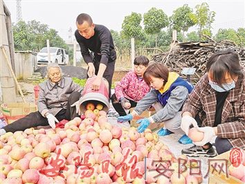 为维护果农利益,11月3日,县商务局多方联络,帮助宜沟镇将城村果农解决销售难题,保障果农增收。该局依托电商平台,开展线上直播直销、采摘体验等活动,并积极进行农超对接,通过源头直采、基地直供的方式,为农户解决产品销路问题,实现农产品与市场需求的紧密对接,助力乡村振兴。图为志愿者帮助果农分拣苹果。(李晓伟 摄)