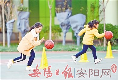 11月11日,在天津市河西区德贤小学,学生在课后素质拓展课上进行篮球训练。(新华社记者 李 然 摄)