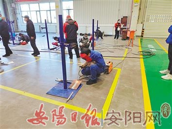 11月9日,县人社局联合县总工会、县农业农村局举办第一届“洹泉涌流杯”焊工技能竞赛。来自各乡镇和企业的22名选手在河南德力新能源汽车有限公司操作车间参加总决赛。下一步,安阳县要围绕“人人持证、技能河南”建设,利用全县“1个县级实训基地+X个乡级公共实训基地”培训网络,提升焊工培训品牌知名度,打造“建筑工匠”之乡。图为技能竞赛决赛现场。(本报记者 郝亚伟/文 冯文慧/图)