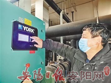 在广厦新苑A区,记者随安阳市国有置业有限公司的技术人员来到小区供热系统的“心脏”,听见机器发出嗡嗡的声音。这套设备采用污水源热泵应用技术,将安阳首创水务有限公司处理产生的中水作为冷热源,不仅能在冬季供热,在夏季制冷,平常还能给居民提供热水。最近几天,技术人员正忙着检查设备,要确保按时把热能送到居民家中。“这是设备的监控系统,有工作人员24小时监控。从这里我们就能看见系统的概况,中水经全自动自清洗过滤器过滤后进入换热器,系统从中水中提取冷热能后,会再将水排到聂村沟、邱家沟用于生态补水。”工作人员指着电脑对记者说。安阳市国有置业有限公司副经理付拥军笑着说:“中水二次利用的供暖方式非常节能环保。这套系统能效比超过3.3,通俗来讲,就是输入1度电可以产生3度电的效能。据统计,我们全年能源代替量达2297.26吨标煤,二氧化碳减排量达5674.23吨/年。”