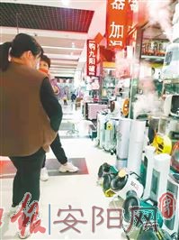 11月14日,天气暖和,在中华路上的一家商场内,不少消费者在选购保暖物品。在一楼大厅电器设备销售处,很多商家将电暖器、加湿器等应季产品摆放在店门口的显眼位置,并打出大促销的牌子。在一家商铺门前,“新货上市”的字样吸引着消费者的目光。商家正在给一位消费者讲解电暖器的款式、功能。记者观察了一下,这些电暖器大小不一,价钱也相差较多。小一点的可以放到桌子上使用,大些的可以放在房间、浴室等处,价格从四五十元到二百多元不等。这位商户指着一款新型产品告诉记者:“这款电暖器即开即热,还省电,比空调节省得多,放到卧室整晚都暖和。”消费者卢琼询问了好几家,也没定下买哪一款。她告诉记者:“款式太多了,尽量选一款节能又安全的,家里有老人,早晚天冷的时候用一用还是很方便的。”