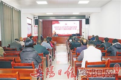 11月12日上午,北关区西漳涧村召开了村规民约学习观摩会。为进一步规范村民行为,增强村民法治观念,强化社会治安,维护村民合法权益,树立良好村风,该村依据国家有关法律规定,结合实际制定了村规民约。自村规民约实施以来,村民自觉学习遵守、共同提升,该村形成了尊老爱幼、扶贫济困、热心公益的良好社会风尚。(王岩 摄)