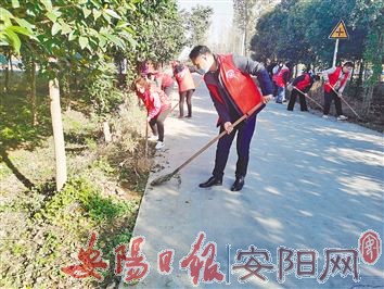 为助力乡村振兴工作,11月16日上午,曙光路街道组织党员干部深入柏庄镇沙高村,对村内环境卫生进行整治,并帮助脱贫户打扫室内卫生。图为党员干部清理主干道旁边的落叶和杂草。(王 超 摄)
