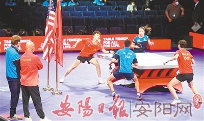 国际乒联21日晚宣布,中美选手将跨国配对出战2021年休斯敦世乒赛混双比赛,中国选手林高远搭档美国选手张安,美国选手卡纳克搭档中国选手王曼昱。22日,这两对中美混双组合进行合练。