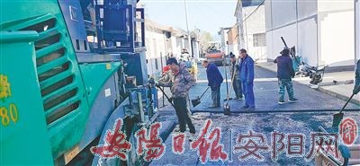 到了北河村,记者看到,村委会以西的主街道上一派热火朝天的劳动场面,机器轰鸣,人车忙碌,正在铺设柏油。赵玉生从施工队伍中走出来,脸上绽放着喜悦,说:“胜利在望,大家都干劲十足,盼着早日全线通车呢!”