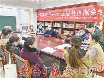 为营造文明创建氛围,11月24日,由区文明办和区委老干部局联合开展的“文明实践我先行、走进社区献余热”退休干部职工走进新时代文明实践站活动正如火如荼开展。当天,在安和苑社区、西营街社区、大寺前社区、官园社区、幸福路社区等新时代文明实践站,广大退休干部职工报到登记、认领岗位、奉献余热,以实际行动引领文明新风尚,提升居民的满意度和幸福感。(蒋升 摄)