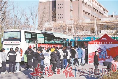 本报讯 (记者 郭新星)无偿献血,爱心流淌。11月22日至26日,安阳职业技术学院联合市中心血站开展了为期5天的无偿献血活动。该学院在校学生和教职工积极利用课间时间到献血车前排队献血,他们纷纷撸起袖子,用自己的青春热血传递社会正能量,为无偿献血公益事业贡献力量。