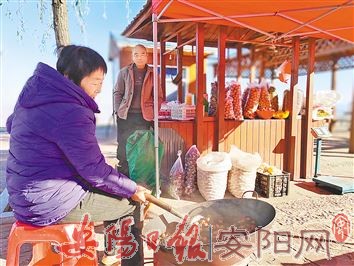 图①:眼下虽是旅游淡季,但村民的致富热情不减。图为村民在炒板栗。