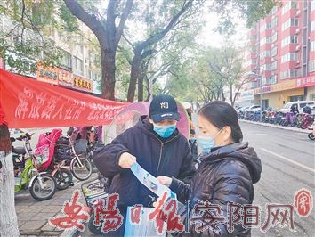 为进一步调动广大就业创业人员的积极性,连日来,解放路街道在辖区开展了就业创业优惠政策宣传活动。图为12月10日,该街道工作人员为有创业意向的群众讲解相关政策。(张洪赞 摄)