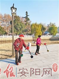 在文明大道和东风路交叉口的街心公园,经常能看到打花棍的老年人。