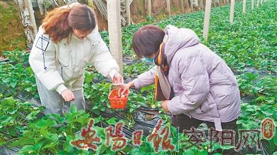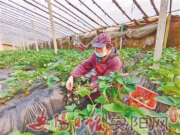 图①为12月13日,该镇韩庄村鑫庆草莓采摘园内,工人正在采摘草莓。