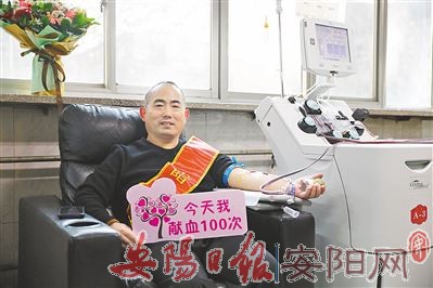 “你问我为什么参与无偿献血,其实我献血就是希望可以帮到别人。献血是一件利国利民的公益事业,值得我一直坚持下去。”张永笑着说。12月14日,家住殷都区水冶镇的居民张永完成了自己的第一百次献血。