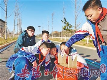 12月21日,在红旗渠精神营地,林州市市直第七小学五年三班学生开展实践体验活动,利用当年红旗渠工地上使用过的土制水平仪“水鸭子”测量水平。近期,红旗渠精神营地研学活动开展得如火如荼,丰富多彩的活动深受中小学生喜爱。