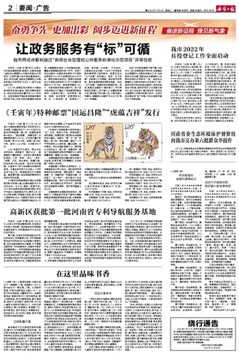 本报讯 (记者 魏 兰)1月3日,记者从中国邮政集团有限公司安阳市分公司获悉,中国邮政定于1月5日发行《壬寅年》特种邮票一套2枚,邮票图案名称分别为:“国运昌隆”“虎蕴吉祥”全套邮票面值为2.40元。计划发行量分别为邮票一图4040万枚,邮票二图3880万枚,版式二230万版,小本票480万本。