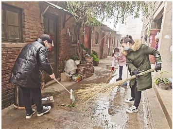 2021年12月以来,文明大道街道各社区(村)对照文明城市创建标准,在沿街路段、背街小巷等重点区域开展“创文”工作。截至目前,分包局委、机关和各社区(村)干部、党员志愿者共110余人参与其中,共清运垃圾20车,清洗垃圾桶900余个。图为2021年12月31日,太行路社区组织工作人员在辖区老旧小区内打扫卫生。(侶 旗 摄)