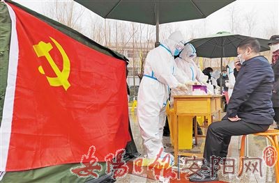 连日来,医务工作者、社区工作者和志愿者奋战在抗疫一线,其中,广大党员冲锋在前,勇挑重担,发挥了先锋模范作用,鲜红的党旗在抗疫一线闪亮。(本报记者 郭晓东 摄)
