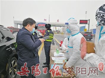 为有效应对当前疫情,安阳县纪委监委严格推进新一轮监督检查,深入乡镇、我市重要出入口等一线防疫现场,采取现场查看、扫码检测、询问相关人员等方式,督查疫情防控各项工作开展情况。图为1月5日,县委常委、县纪委书记、县监委主任李月亮在安南高速公路安阳东站口查看健康码系统运行情况。(本报记者 郝亚伟 摄)