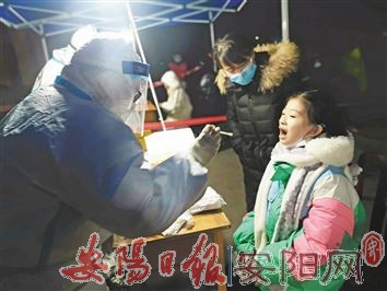 北关区于1月9日15时启动了全员核酸检测。图为在曙光路街道盘庚东社区辖区河南护理职业学院家属院核酸采样点,群众接受采样。(本报记者 刘 斐 摄)
