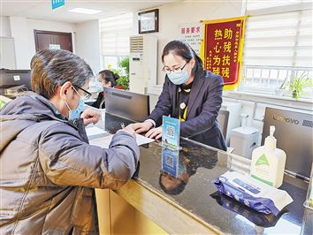 为统筹做好疫情防控和复工复产工作,根据我市疫情防控形势,市残疾人就业服务中心自2月7日起恢复服务大厅业务正常办理。该中心及时发布通知,温馨提醒用人单位和残疾人朋友落实戴口罩、测体温、“1米线”等措施,倡导通过电话咨询就业培训、盲人按摩、按比例安排残疾人就业等业务。该中心全体干部职工迅速进入工作状态,以新面貌、新状态、新作风开启新征程。图为昨天,服务大厅工作人员接待来访群众。(徐越 摄)