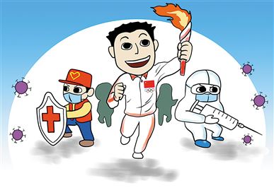 本届冬奥会是疫情以来首次如期举办全球综合性体育盛会,让世界看到了中国人民的重信守诺,为世界注入了战胜疫情的信心和勇气。这场盛会,为疫情之下不同肤色、信仰的世界人民展示体育竞技水平,展现团结进步精神,推动构建人类命运共同体提供了契机和舞台。 (邱 峰 绘)