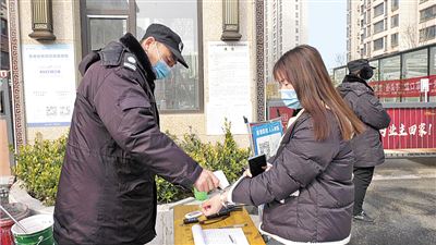 社区是疫情防控的重要防线,为了持续巩固疫情防控成果,连日来,城关镇晨阳社区广泛发动干部群众,积极创建“无疫社区”“无疫小区”。图为物业公司工作人员为进出小区的群众测量体温。 (孙仁忠 摄)