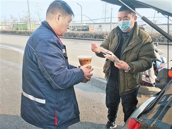 春节假期,为给广大市民营造一个洁净和谐的节日环境,殷都区环境卫生事务中心精心部署、做好动员,加强对人群密集区域的垃圾清运和路面保洁工作,确保垃圾日产日清,并对市政环卫设施开展消杀作业。当时由于疫情防控需要,沿街门市暂停营业,清运公司还自筹食材,加班加点做饭,保证环卫工人的饮食供应。上图为工作人员在一处垃圾清运点内进行消杀。下图为2月3日,殷都区环境卫生事务中心负责人为机械清扫司机送餐。(殷都区环境卫生事务中心供图)