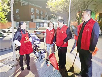 “这是环卫公司夜班经理刘海风,这是仓口社区的社区主任郭江红,这是商户志愿者李富裕……”他总是自称“人民环卫工”,环卫工、志愿者中他大部分都能叫得上名字。一路走来,他和这些普通志愿者打的交道最多。