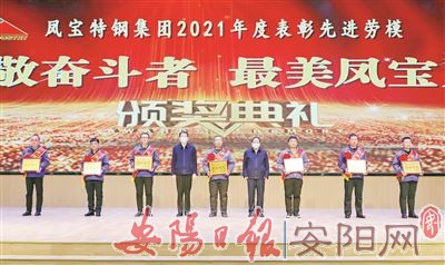 2月9日晚,河南凤宝特钢集团举行“”颁奖典礼,隆重表彰在2021年贡献突出的先进集体和个人。2021年,河南凤宝特钢集团产量创历史新高,钢管产量达120万吨,型材产量再次突破20万吨,销售收入首次超过 200 亿元,上缴利税2.81亿元。(本报记者 刘剑昆 摄)