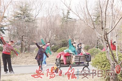 疫情过后,很多林州市民走到户外,享受健身的乐趣。2月10日,记者在该市黄华河公园看到,部分舞蹈爱好者在集体跳舞健身,迎接春天的到来。(本报记者 张苗庆 摄)