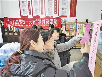 为增添传统节日气氛,丰富辖区居民的业余文化生活,昨天下午,文峰区西大街街道南门西社区新时代文明实践站联合市三角湖公园管理站开展了“我们的节日——元宵”猜灯谜活动。(牛广荣 摄)