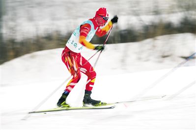 2月17日,中国队选手郭玉好在越野滑雪比赛中。