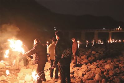 2月15日,农历正月十五,殷都区都里镇许家滩村南侧的漳河之畔,锣鼓喧天,热闹非凡。村民们簇拥在一起点河灯、送河灯,一盏盏河灯载着对新年新生活的向往绽放在水中,慢慢远去。许家滩村送河灯的习俗起源于清朝乾隆年间,这一传统习俗由于后来漳河水水量减少中断了40余年。近年,随着漳河湿地生态逐渐恢复,这里的人们又重新点起了河灯,祈福新的一年国泰民安、风调雨顺。