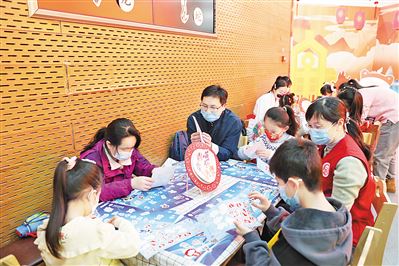 活动中,讲解员向大家介绍了元宵节的起源、发展历史、节庆习俗等知识。随后,孩子们认真地折纸、拼灯笼架……不一会儿,一个个精巧的小灯笼便制作完成了。“今天我在‘甲骨学堂’学了很多元宵节的知识,还自己动手做了一个漂亮的花灯,收获满满,非常开心。”陈思源小朋友开心地说,他度过了一个特别有意义的元宵节。与此同时,猜灯谜、巧制冰墩墩、鼎喵冬奥贴纸等丰富多彩的活动也吸引了很多小朋友和家长参与。