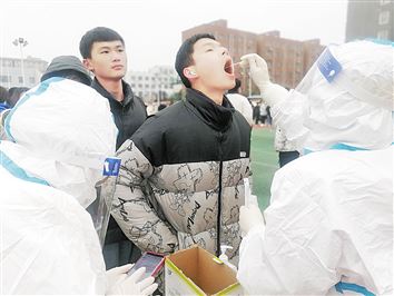 在检测现场,内黄县第二人民医院副院长赵静带领21名医护人员冒着严寒,严格执行采样流程,穿戴好防护设备,为每一位孩子进行核酸采集。孩子们保持一米距离排队,依次进入采样区接受核酸咽拭子采样,整个过程有条不紊。截至目前,该院共为4126名师生进行核酸采样。(张 涛/文 刘瑞芳/图)