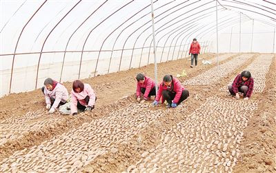 2月22日,汝阳县柏树乡华沟村一种植专业合作社的社员在育红薯苗。