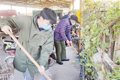 2月17日,水冶街道组织社区干部在辖区开展环境卫生大扫除活动,对卫生死角进行清理。活动中,社区干部积极发扬奉献精神,不怕脏、不怕累,清扫、捡拾、清运垃圾,部分居民也拿着扫帚等工具加入大扫除的行列,为保持社区环境整洁出力。图为社区干部和群众在打扫卫生。(李 敏 摄)