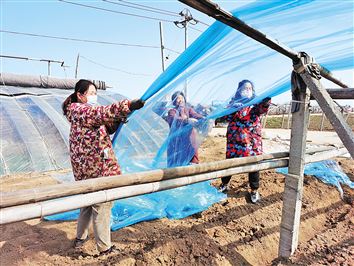 随着天气逐渐回暖升温,为抢抓时机,宝莲寺镇组织群众积极开展春播春种。图为2月25日,崇召村村民抢抓晴好天气,适时进行蔬菜种植、西瓜嫁接育苗、扣棚等工作。(魏艳伟 摄)