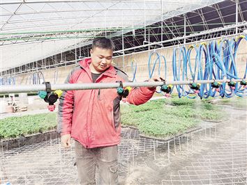 在育苗温棚里,王书亮安装了集温度、湿度和光照等自动控制于一体的智能控制系统。在航灌控制下,温棚一年四季都可以育苗,每批可培育菜苗100万株,菜苗成活率和质量都大大提高,仅冬季育苗就可带来近20万元的效益。