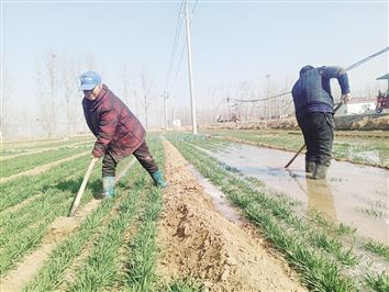 人勤春来早,百事农为先。随着气温回升,小麦开始返青,春季农田灌溉进入高峰期。安阳县(示范区)广大群众及时为小麦浇灌返青水,为今年夏粮丰产丰收打下坚实基础。图为2月27日,辛村镇武家门村村民在高标准农田浇返青水。(本报记者 刘安娜 摄)