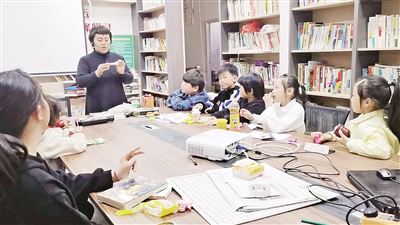 3月6日是周末,在马上乡李石村的微光书苑里,孩子们像往常一样聚集在这里,他们有的挑选书籍,有的安静阅读,有的在做手工。“这里有5000余本图书,孩子们平时会自己整理书籍,年龄大点儿的孩子会带着年龄小点儿的孩子整理书籍、阅读书籍。”李翠利颇有成就感地说,“除了阅读,我们还开展了很多活动,比如这是上次活动时,孩子们用彩泥作出的‘冰墩墩’和‘雪容融’。我们还会举办各种讲座,有时候还通过投影仪观看教育影片和爱国影片。”