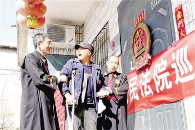 日前,安阳县人民法院法官张日富等一行6人,深入辖区西部乡村巡回审理一起赡养纠纷案。在年逾七旬的当事人谢某某居住地,法官挂上国徽、拉起条幅、摆好桌椅,快速搭建起一个简单而又不失庄严的审判庭。经过法庭调查等诉讼程序,法庭宣布休庭。庭后,法官分别向村委会干部、当事人近亲属详细了解了案件相关情况。张日富表示,只要有一线希望就不会放弃案件的调解,将尽最大努力让谢某某安享晚年。(黄宪伟 摄)