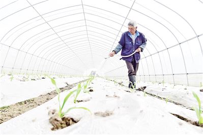 3月10日,浙江省建德市寿昌镇西门村村民在大棚里劳作。