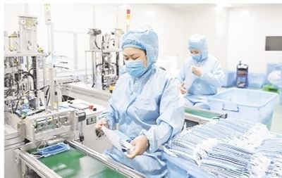 3月7日,记者在坐落于滑县产业集聚区的河南华康宏力医疗器械有限公司看到,百余名工人正在忙着赶制订单。
