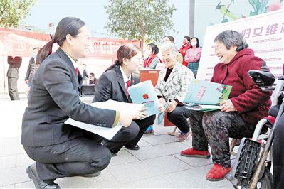 图为3月10日下午,该院女干警为群众宣讲法律法规并答疑解惑。(本报记者 王 璐 摄)