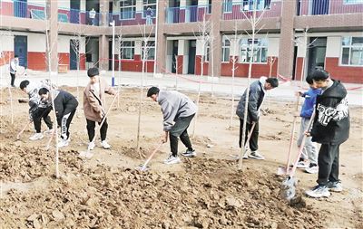 为增强师生劳动技能,3月17日,北关区柏庄二中师生在校园“银杏苑”内挖土、平整,种植红枫树和三叶草,既美化了校园环境,又增强了广大师生身体素质。图为学生正在劳动。