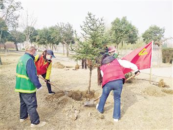 为进一步弘扬雷锋精神,倡导绿色生活,3月12日,北关区灯塔路街道县中街社区组织志愿者开展“浓情雷锋月 相约植树节”主题活动,为辖区绿化贡献一份力量,以实际行动美化居民生活环境。(本报记者 李 阳 摄)